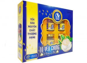 Hộp Tổ Yến Chưng Đường Phèn SCNEST với thành phần bao gồm nước tinh khiết, hàm lượng yến sào 15%, đường phèn, hương liệu đặc biệt khác.